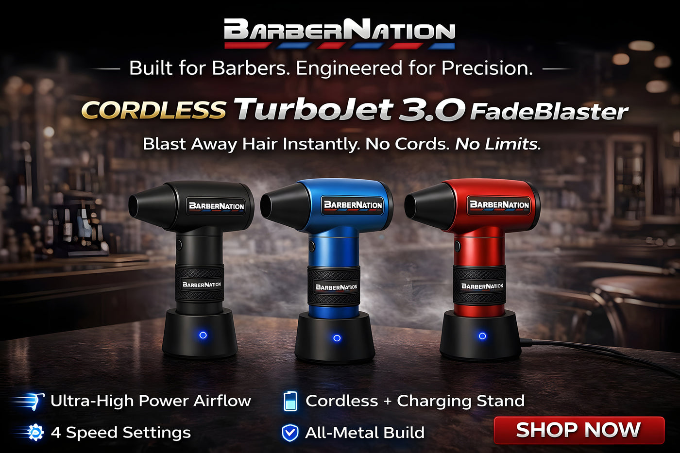 BarberNation TurboJet 3.0 FadeBlaster Cordless Air Duster with Charging Stand and Vacuum