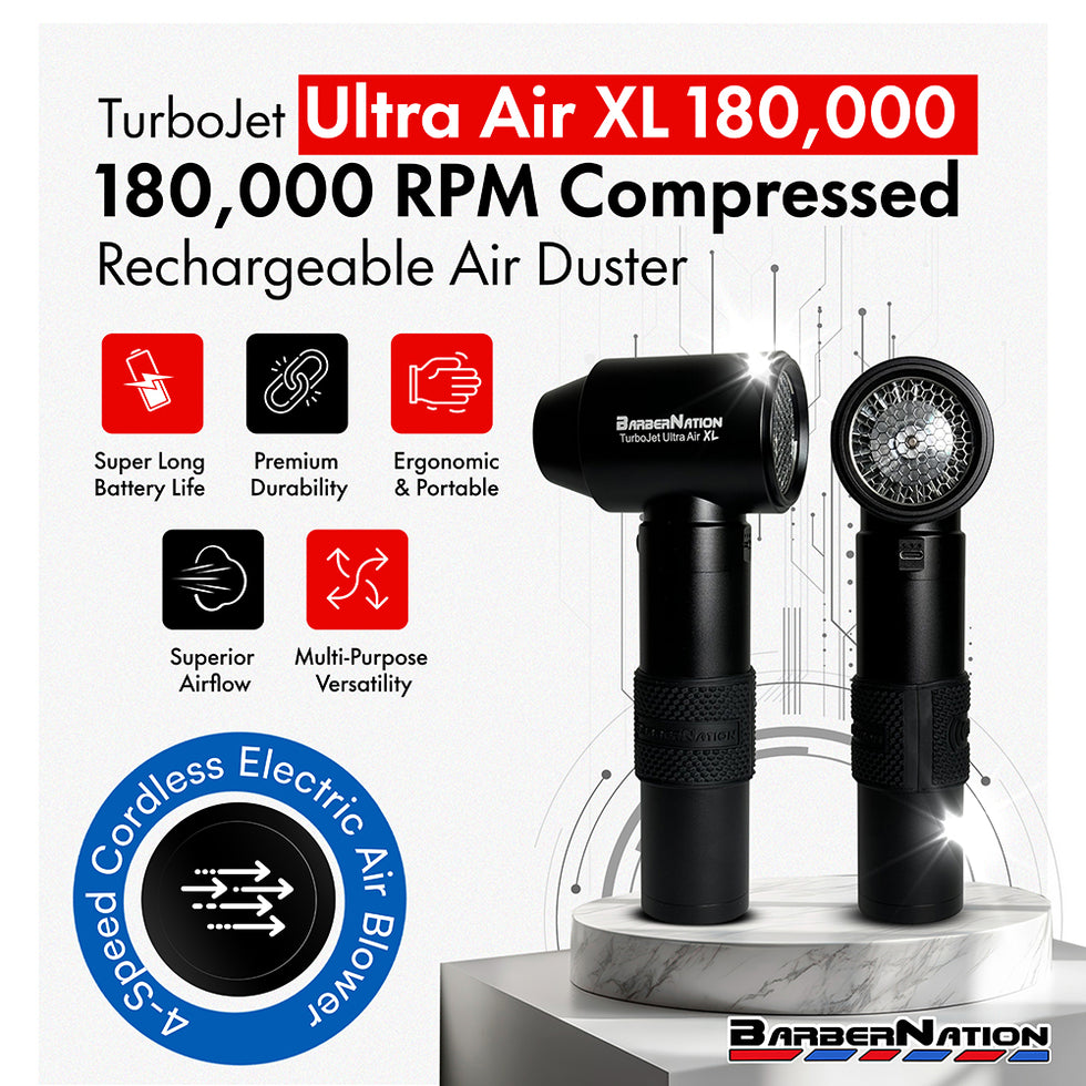 BarberNation Heavy-Duty TurboJet Ultra Air XL 180,000RPM - Matte Black