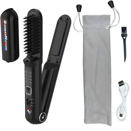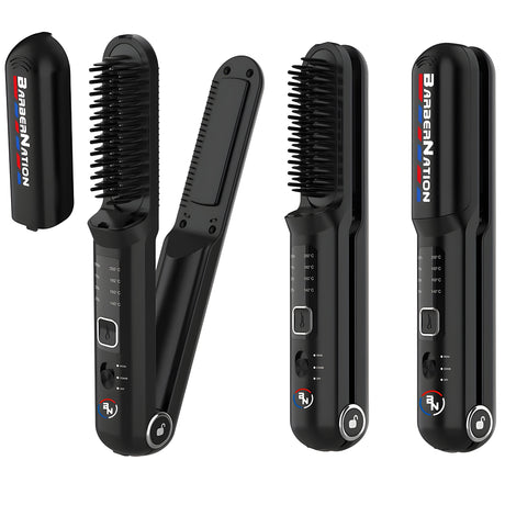 BarberNation 2-in-1 FadeFusion Cordless Heated Beard Brush & Flat Iron