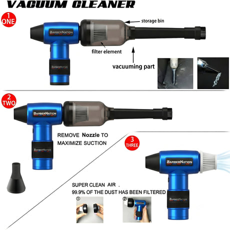 BarberNation TurboJet 3.0 FadeBlaster Cordless Air Duster with Charging Stand and Vacuum